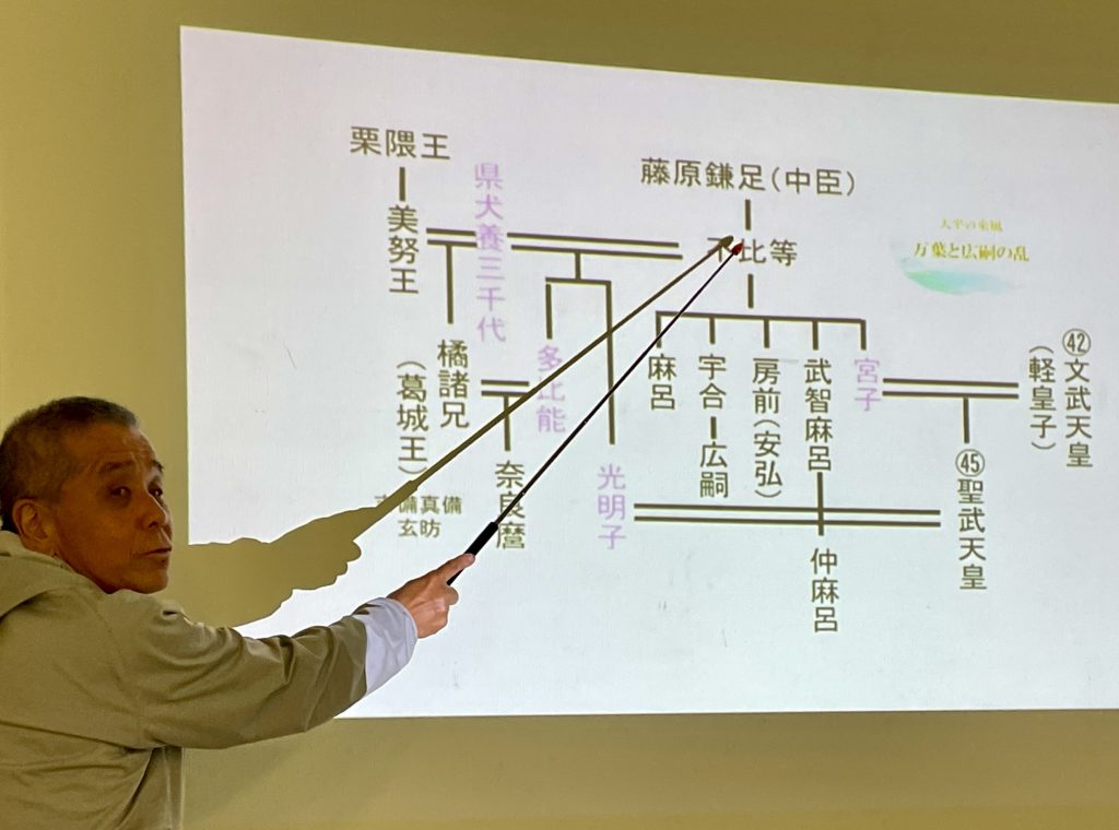 系図から光明皇后を取り巻く人間関係が説明されました。